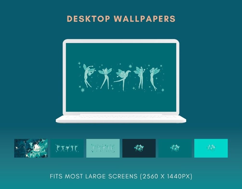 A collection of hand-drawn illustrated digital wallpapers inspired by fairies. This standard pack includes digital wallpapers for mobile, tablet, and desktop.