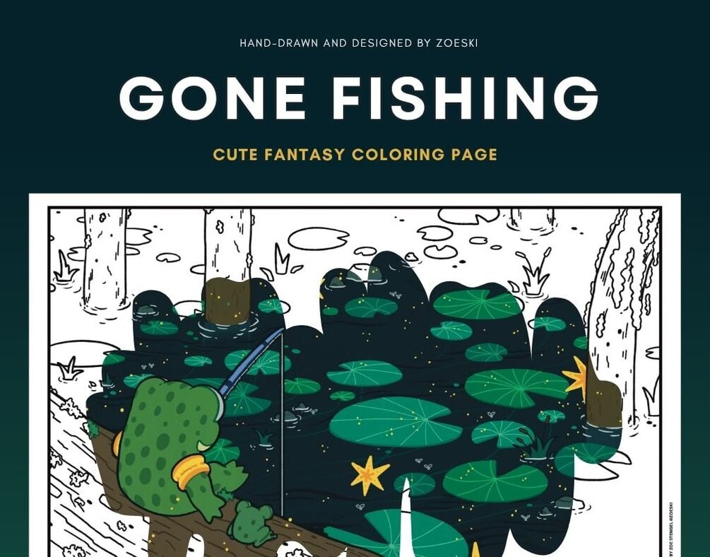 GONE FISHING - Printable Coloring Page | Frog Fantasy | Free Download | DTIYS