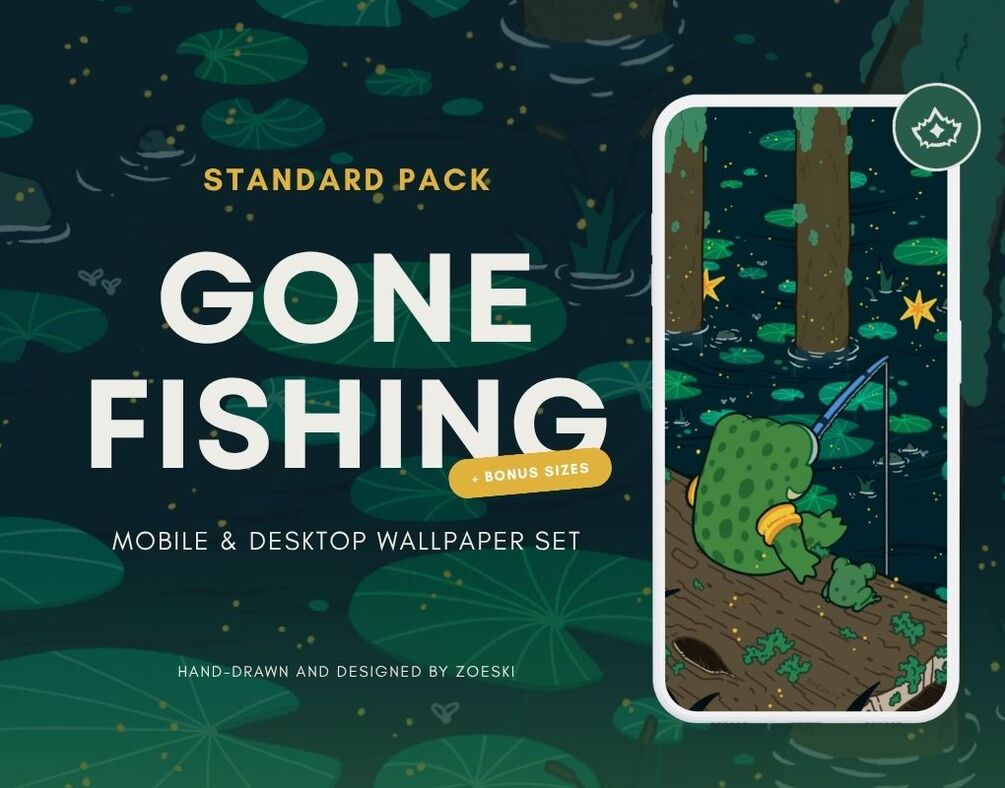 GONE FISHING - Mobile & Desktop Wallpaper Set | Cute Frogs | Fishing | Lily Pad Pond
