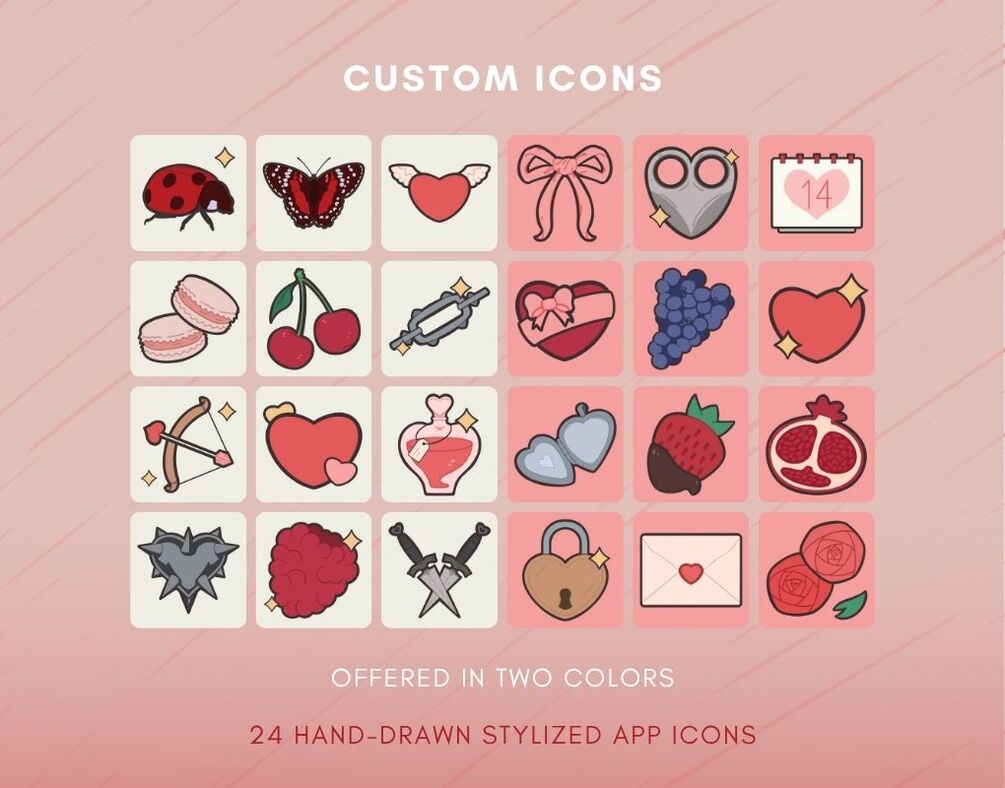 A collection of hand-drawn illustrated digital wallpapers and app icons inspired by love, pomegranates, chains, and all the like. This deluxe pack includes digital wallpapers for mobile, tablet, and desktop, and a custom app icon set.