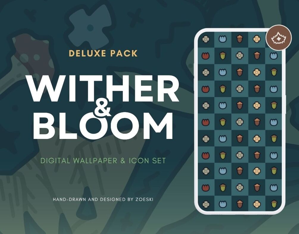 WITHER & BLOOM - Digital Wallpaper & Icon Set | Cute Art | Flower Foliage | Snakes & Reptiles