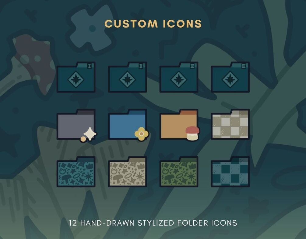 - 36 PNG hand-drawn icons (24 app, 12 folder transparent backgrounds)